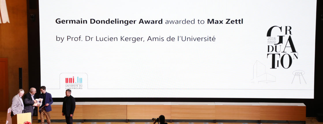 La cérémonie a été suivie d’une réception à la Maison de Arts et Étudiants. Le Prix a été crée en hommage à Germain Dondelinger 1953 – 2015, Commissaire du Gouvernement auprès de l’Université du Luxembourg de 2003 à 2014 et Président du Fonds Belval de 2004 à 2014.