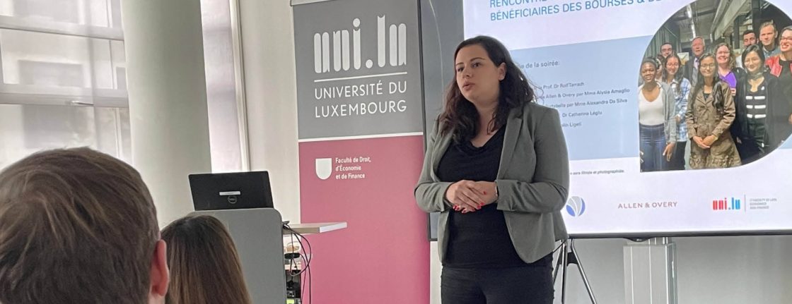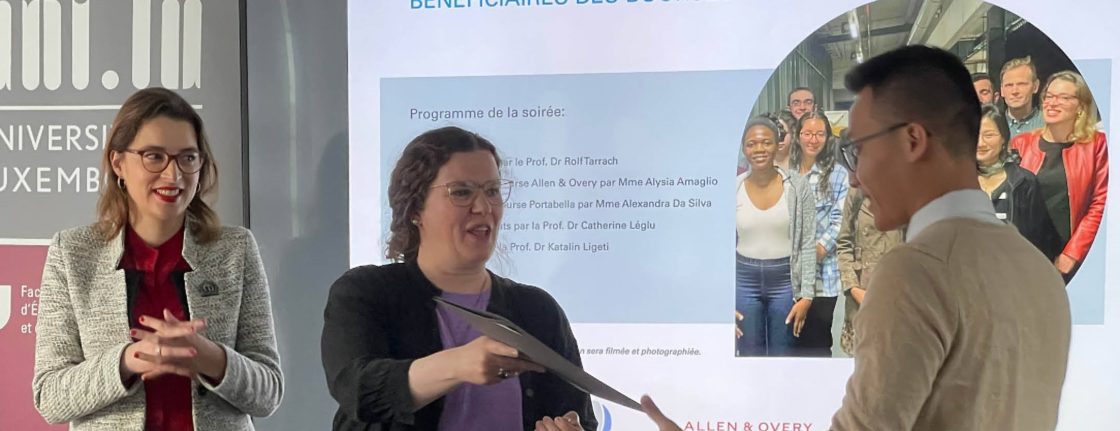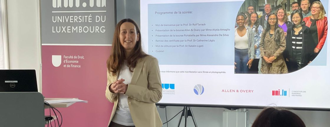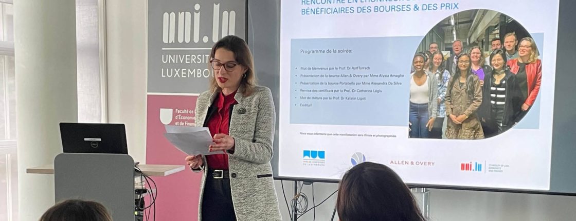 The festive event brought together scholarship and prize winners, University of Luxembourg, les Amis de l’Université, as well as representatives from some of the organisations and foundations which sponsor the various prizes and scholarships. Prof. Rolf Tarrach opened the ceremony by welcoming the participants. He reiterated the missions of the association and acknowledged the sponsors for their generous support to the students before handing the stage over to Allen & Overy Senior HR Business Partner and CSR Officer, Ms. Alysia Amaglio.